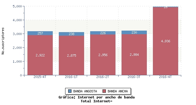 | TRIMESTRE | BANDA ANCHA | BANDA ANGOSTA | TOTAL |