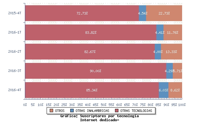 | OTRAS INALAMBRICAS | 4,55% | 4,41% | 4,00% | 3,85% | 4,24% |