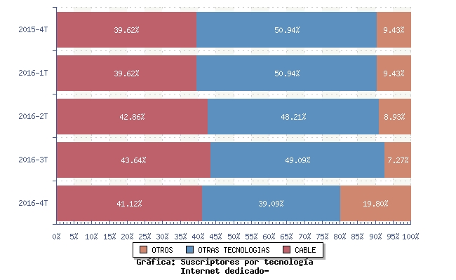 | OTRAS TECNOLOGIAS | 47,37% | 47,37% | 45,00% | 44,26% | 38,89% |