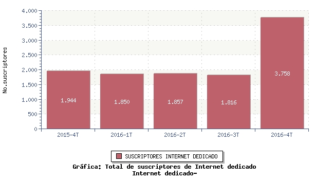 Total de suscriptores de Internet dedicado